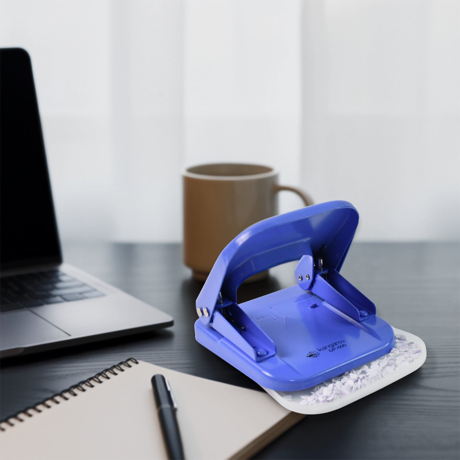 The Kangaro DP-500 Two-Hole Punch Machine is a durable and reliable office tool designed for precision paper punching. Built with a strong metal base and a comfortable plastic handle, it ensures smooth and effortless punching for professional and everyday use. The punch has a capacity of up to 22 sheets at once, making it highly efficient for bulk document organization. With a built-in paper guide and chip tray, it provides convenience, accuracy, and easy maintenance. Perfect for offices, schools, and personal use, the Kangaro DP-500 is a must-have stationery tool for organized filing and documentation.