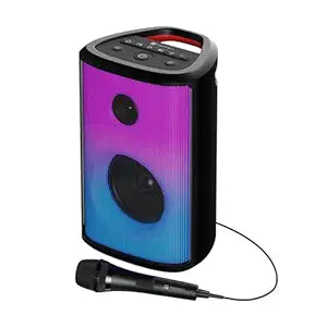 Introducing Portronics Dash 8 - Your Ultimate Party Companion! Get ready to amp up your gatherings with powerful 60W HD Sound and Bass Boost. This portable wireless speaker comes with a wired karaoke mic for singing sessions and an easy-to-use control panel. Connect effortlessly with Bluetooth 5.3v, USB, AUX, and more. Enjoy the vibrant atmosphere with 6 LED light modes. Double the fun with TWS Pairing for 120W output. With a long 6-hour playtime, fast charge using Type-C cable. Plus, it's water-resistant (IPX5) and easy to carry with the built-in handle. Elevate your parties anywhere, anytime!.60W HD Sound with Bass Boost: Portronics Dash 8 a portable wireless party speaker delivers the most authentic and impactful music experience. This party speaker’s 60-watt HD sound with the built-in Bass Boost Technology fills the space with crystal-clear and deep bass. It is what you need for your parties and get-togethers, whether indoor or outdoor..Wired Karaoke Mic: A wired microphone is included in this music system, so you can turn your parties into interactive, fun events and sing your heart out. Enjoy karaoke sessions with your friends and family. Effortlessly manage your music easily with the integrated control panel..Multiple Connectivity Options: The speaker box features bluetooth 5.3v for quick and easy wireless connection to your devices like- smartphones, tablets, laptops, etc. for audio. Apart from this, it also supports wired connections including- USB Flash Drive, AUX, In, and a dedicated karaoke mic port..6 Full Panel LED Effects: This party speaker's high bass and sound are accompanied by colorful LED RGB lights that cover the entire panel creating a captivating audio-visual feast & elevating the atmosphere of the party. You can select from 6 different light modes using the integrated control panel..TWS Pairing: Double the output to 120W, by connecting one Dash 8 party speaker with another Dash 8. This TWS wireless pairing is super-easy and creates an intense sonic impact and an unprecedented gran