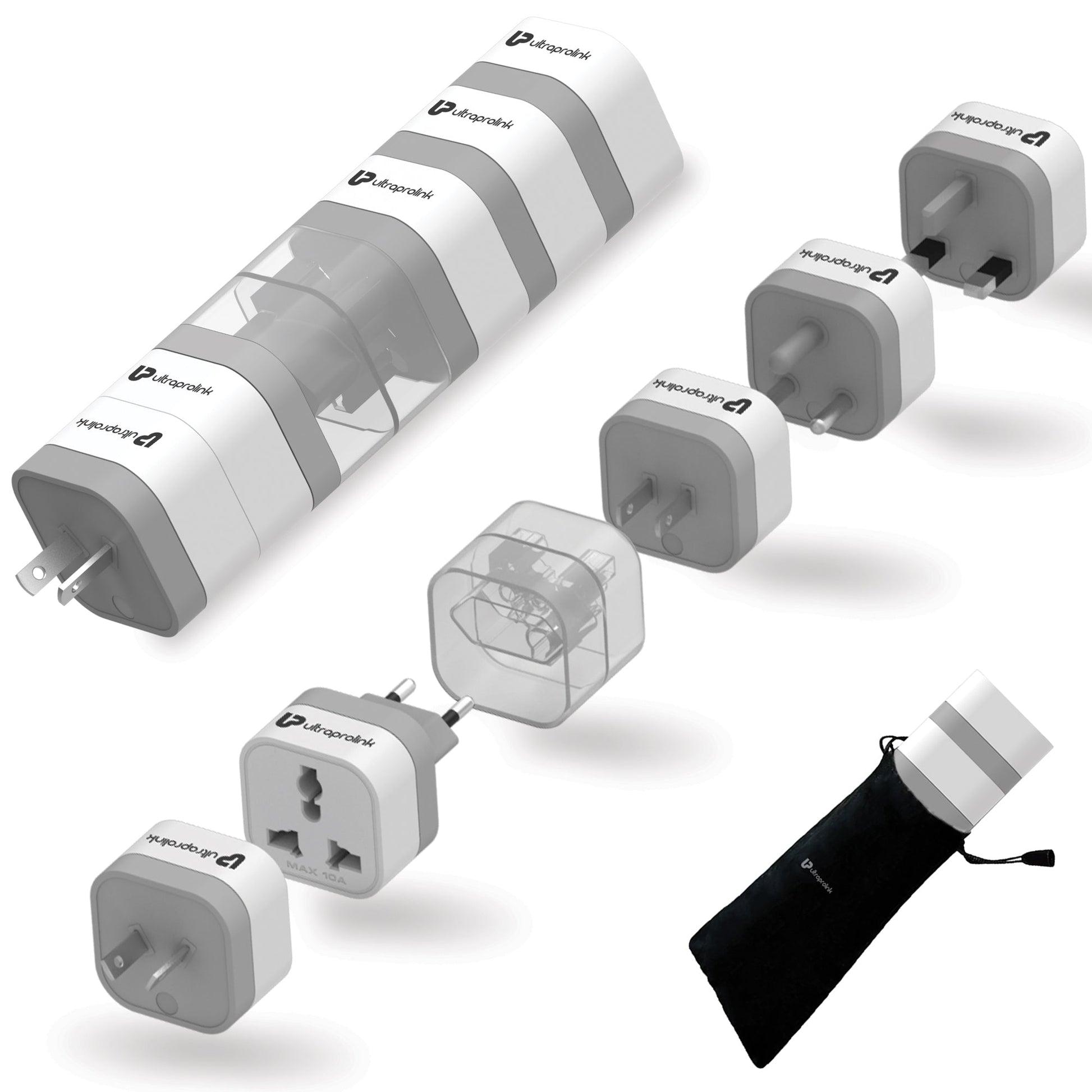 Introducing UltraProlink Travel Qubes (UM1164), a set of 5 universal world AC converter plugs for seamless connectivity in 150+ countries. With a wide voltage compatibility range (AC 110V~250V/10A/2500W max), Travel Qubes ensure reliable power socket compatibility to power up laptops, smartphones, tablets, cameras, and small appliances. Safety is paramount with its Fire Retardant Housing, complemented by a carry pouch for spare plugs. Enjoy the convenience of a brand warranty with a six-month replacement policy anywhere in India. Not a voltage converter, Travel Qubes is perfect for devices up to 2500W, offering a reliable global power solution. Stay connected, stay powered with Travel Qubes.
